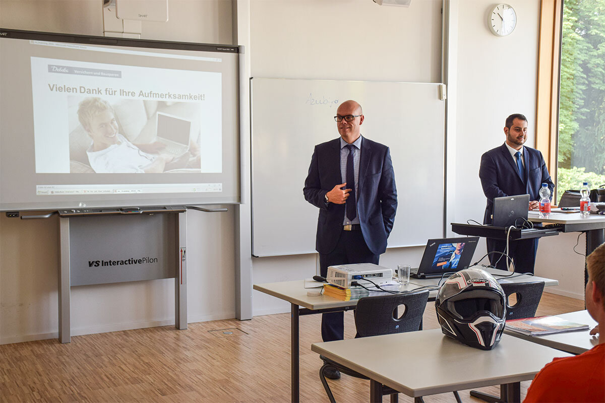 Pünktlichkeit, Augenkontakt, Freundlichkeit, Offenheit, sprachlich ruhig und deutlich, angemessene Kleidung - auch auf den Bewerbungsfotos („Schlipsberufe fordern Schlips“) sind für Mark Antes, Debeka-Versichern und Bausparen Singen, beruflicher Vertreter des neuen Bildungspartners für das Berufsschulzentrums Radolfzell, die Standards bei der Bewerbung. Er stellte in seinem Vortrag vor der Klasse des Berufskollegs Wirtschaftsinformatik im ersten Kollegjahr und interessierten Kolleginnen und Kollegen mögliche von der Schule abrufbare Module vor.